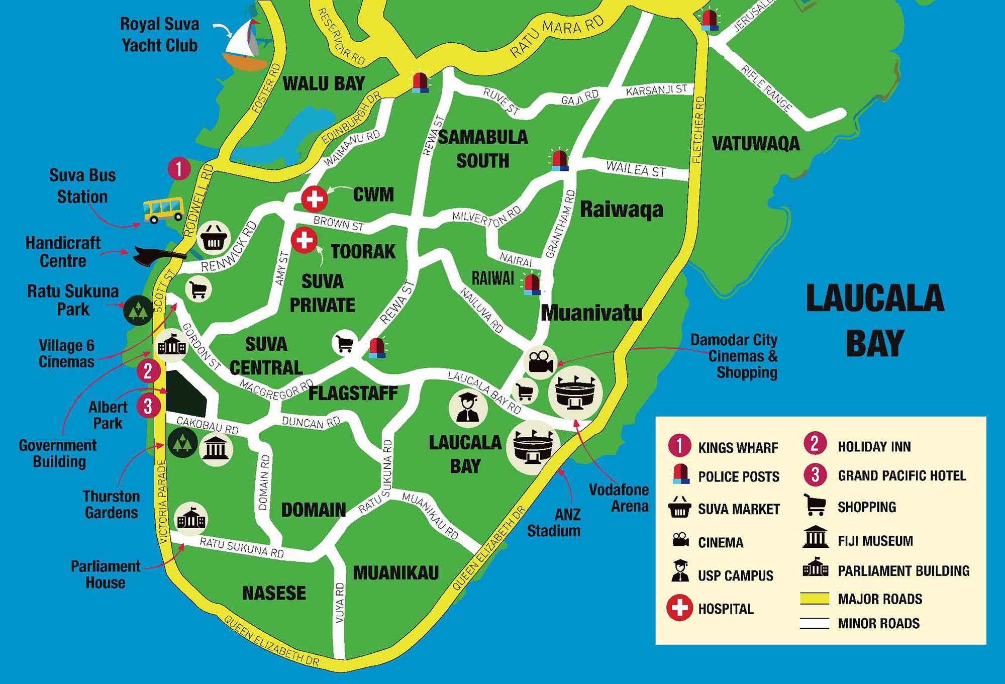 Suva, the capital and largest city of Fiji, is a bustling urban center situated on the southeastern coast of Viti Levu. Known for its lively atmosphere and cultural diversity, Suva offers a blend of modernity and traditional Fijian charm. The city features a mix of colonial architecture, vibrant markets, and contemporary buildings. Visitors can explore the Fiji Museum, showcasing the country’s rich history and cultural heritage. Albert Park and Thurston Gardens provide peaceful green spaces in the heart of the city. Suva’s lively municipal market is a vibrant hub where locals and visitors alike can experience the colors, flavors, and aromas of Fijian produce. The city is also a gateway to nearby natural wonders, including Colo-i-Suva Forest Park. With its dynamic energy, cultural richness, and strategic location, Suva stands as a key hub for exploring the diverse facets of Fiji.