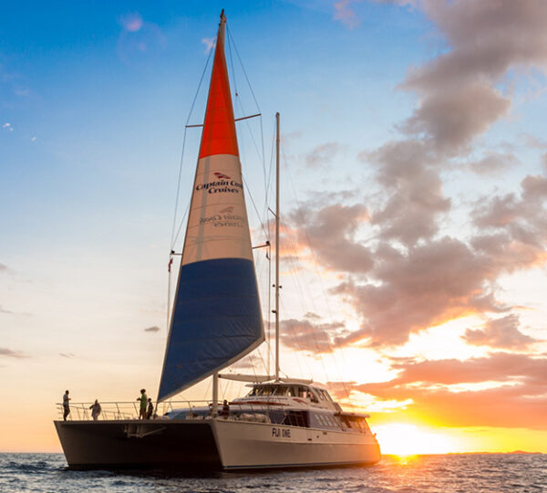 Inclusions: Complimentary welcome drink, BBQ dinner onboard, Fijian cultural entertainment, spectacular scenery, complimentary transfers from Nadi or Denarau hotels, plus a lobster main course is available at additional cost (pre-booking required).