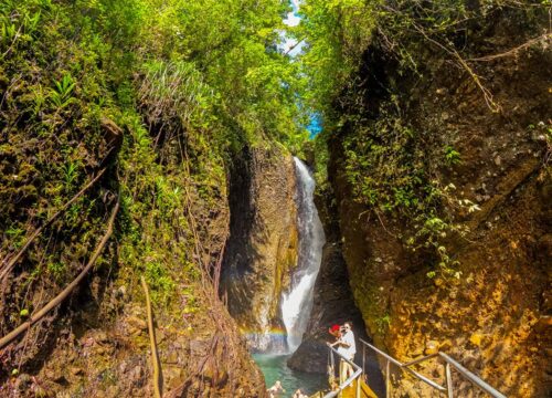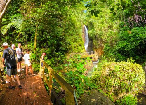Take a guided hike through the lush rainforest to the Nakawaga Waterfall. The trail offers views of diverse flora, leading to a 50-foot waterfall cascading into a clear pool, perfect for a refreshing swim.