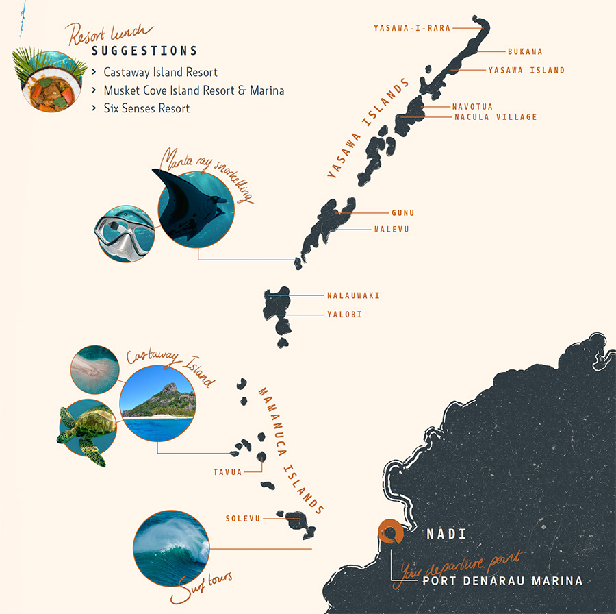 - Castaway Island tour – visit the filming location, sand bars, and enjoy lunch on the island or at a resort